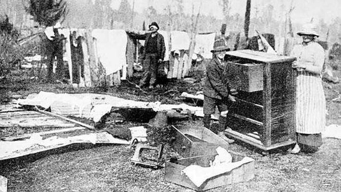 The Raetihi fire in March 1918. Much has been written about this disaster which swept through the area taking all in its path, so fierce were the flames, fanned by a strong gale that boards off buildings went flying through the air like paper, three lives were lost, homes were burnt in minutes, stock units perished by the thousands. Once again it was time to rebuild, and much help was given from around the country, the fire did have the beneficial effect of cleaning up the previously milled areas and so farming steadily developed.