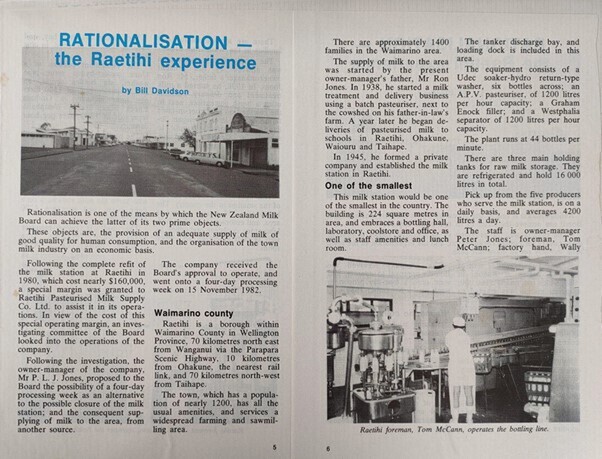 This is the story of the ‘Raetihi Pasteurised Milk Supply Company Ltd’ (RPMSCo) as recounted in 1981 by Amy Lucy Jones (nee Ward) born June 1914 in Raetihi and her son Peter Jones, born Dec 1945 in Raetihi and recounted again in 1995.