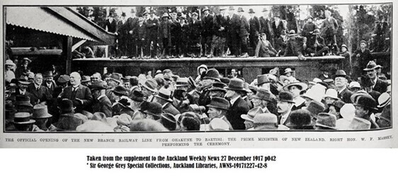 On 18 December 1917 in front of a large crowd at the Raetihi station, Premier, the Right Hon. W.F. Massey officially opened the line. That day six return train trips to the Junction were well patronised. An evening celebration banquet was held in the Raetihi Drill Hall. On 19 March 1918 a relief train took about 200 frightened folk from Raetihi to escape the terrible fire that swept through the district. That year two mixed passenger/freight trains ran daily. Trips took about 35 minutes at maximum 40 km/hour and reduced 10 and 32 km speeds over the Mangawhero river’s road/rail bridge at Makaranui. In March 1919 a Saturday service was approved and popular.