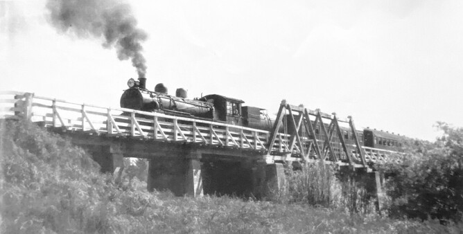 There were four bridges on the Branch. No 1 was a 22 ft steel beam over the KoroKoro stream. No 2 was a 18.3 mtre wooden truss bridge over Mangawhero River at Makaranui with steel beams and a timber through-truss centre section. No 4 was a timber beam bridge on Smith’s Mill Road.